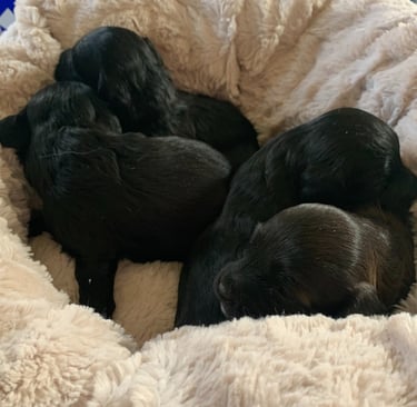 Wavy black coats, friendly and perfect for family cuddles and walks.
